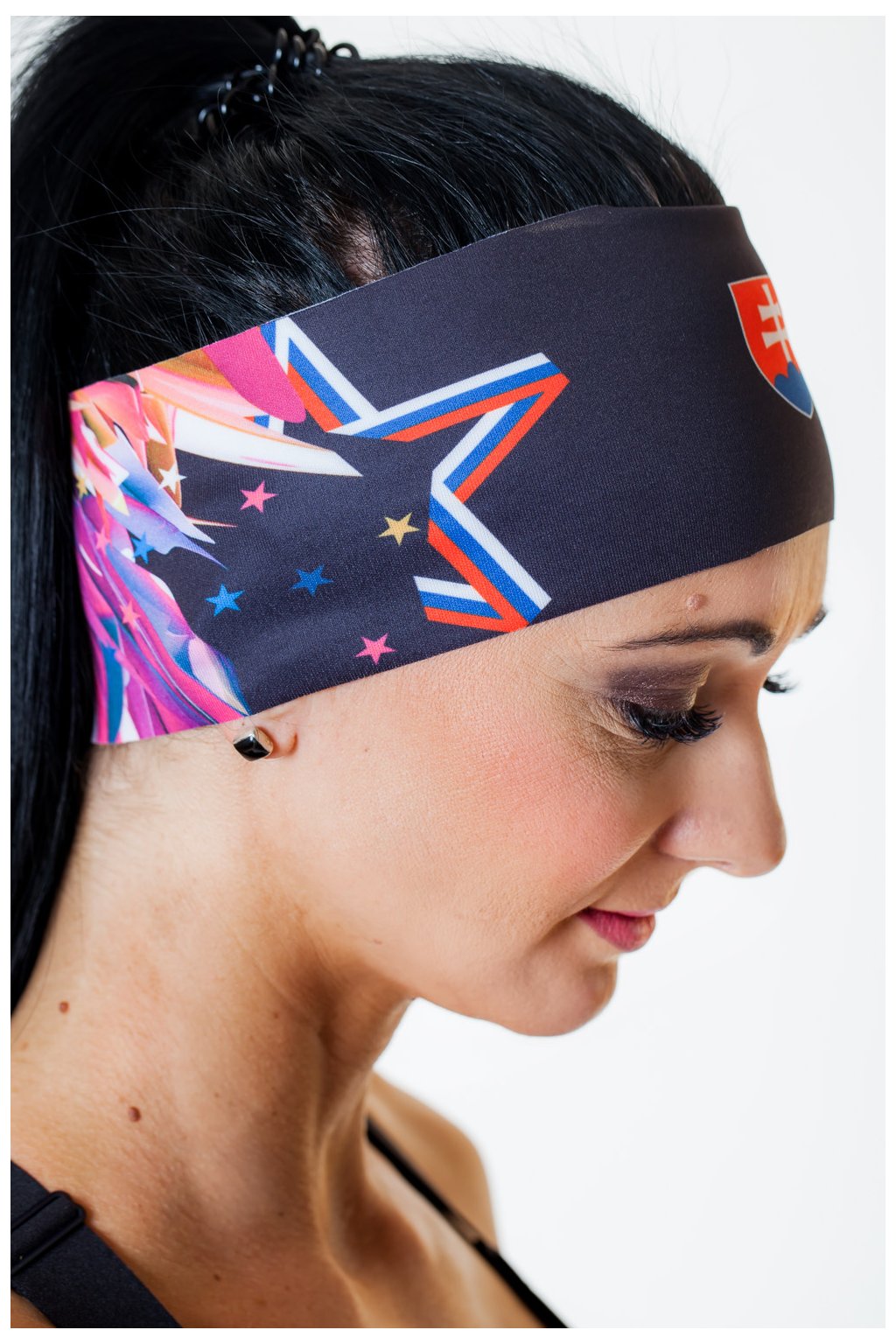 Praktická čelenka ladí s grafikou našich dlhých, 3/4 legín a šortiek, ktoré si môžete zakúpiť spolu ako športový komplet.