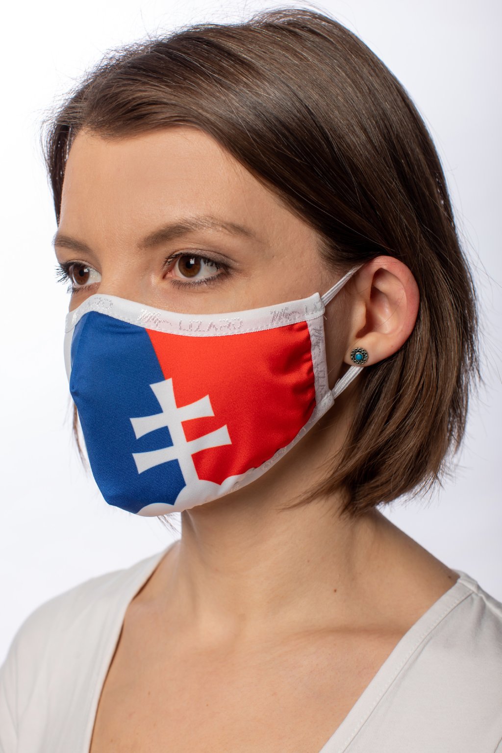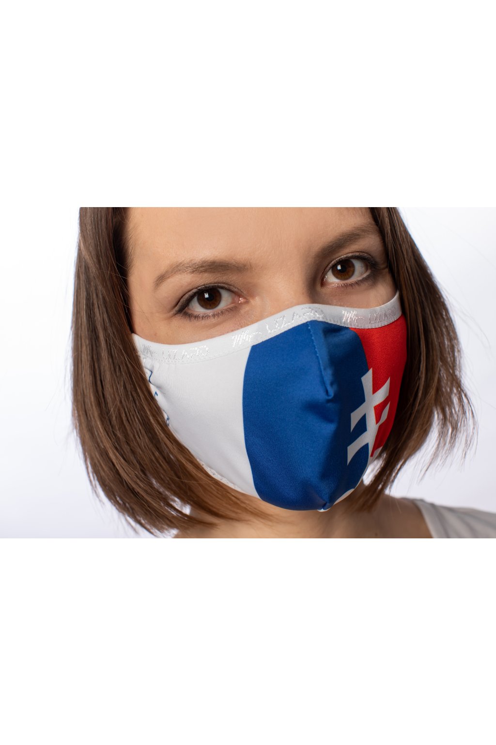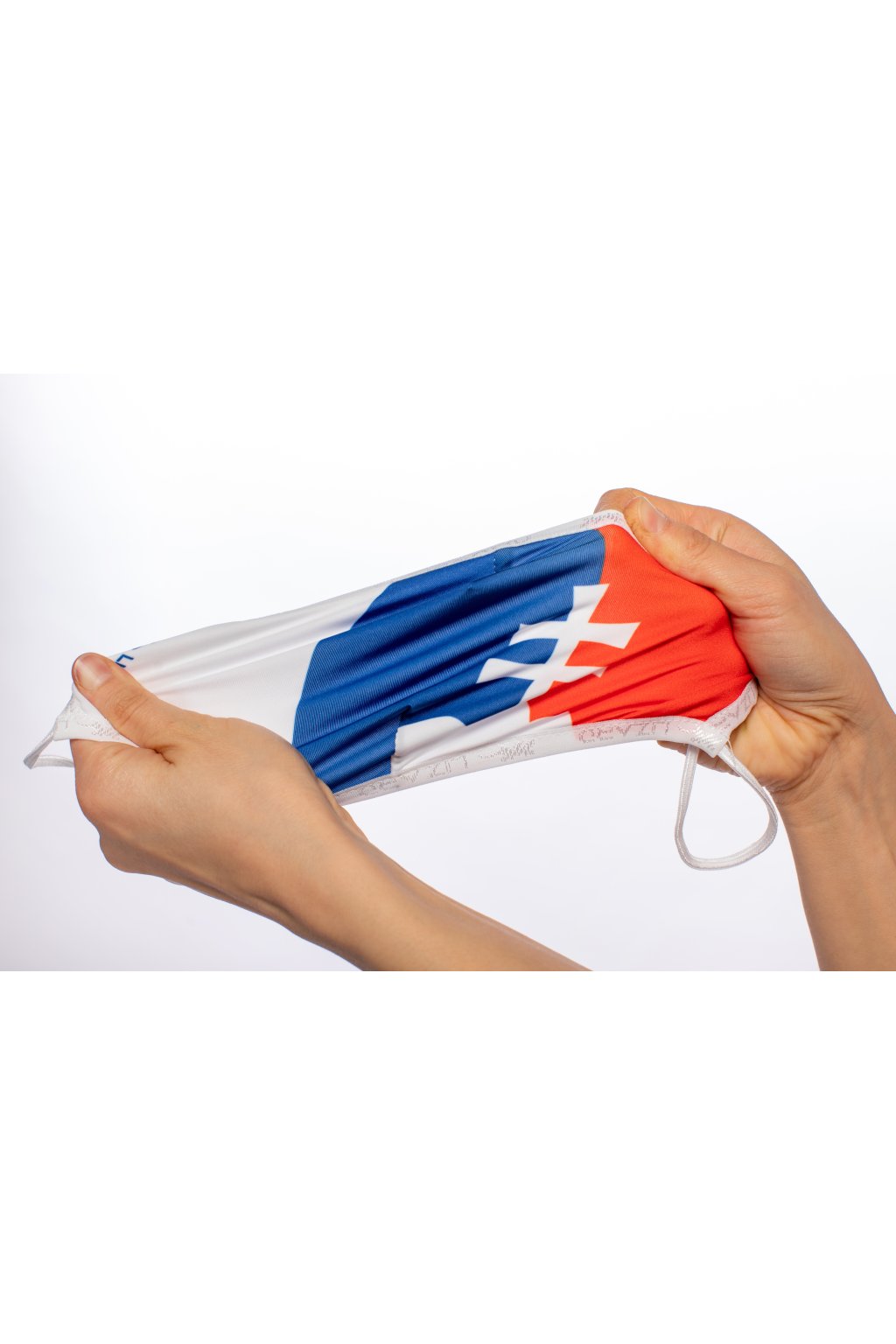 - vonkajšiu stranu rúška NEŽEHLIŤ (látka, kde je zobrazená grafika)